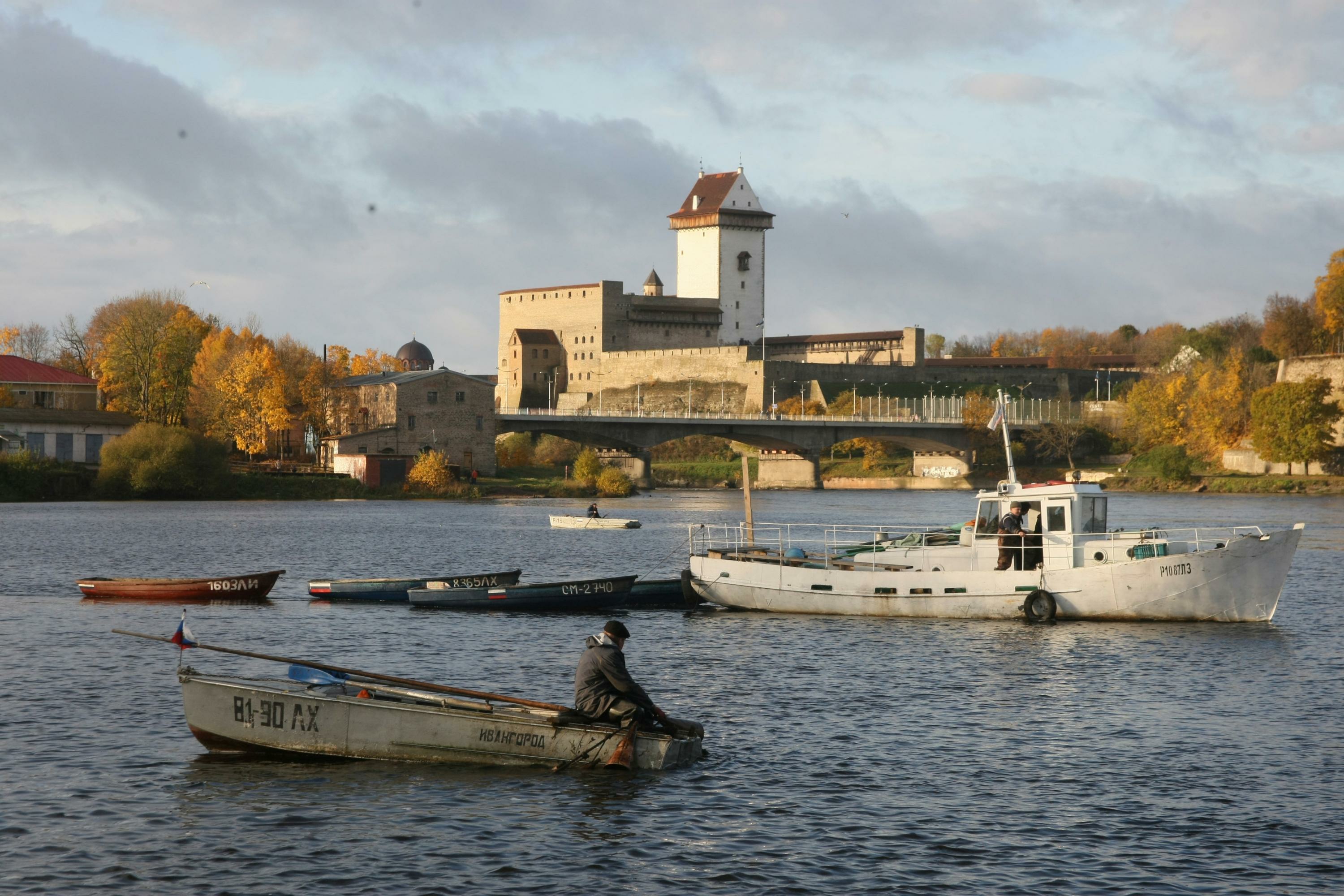 “На противоположном берегу Нарвы прекрасно просматривается средневековый замок в городе Нарва (основан датчанами в XIII веке)”.
