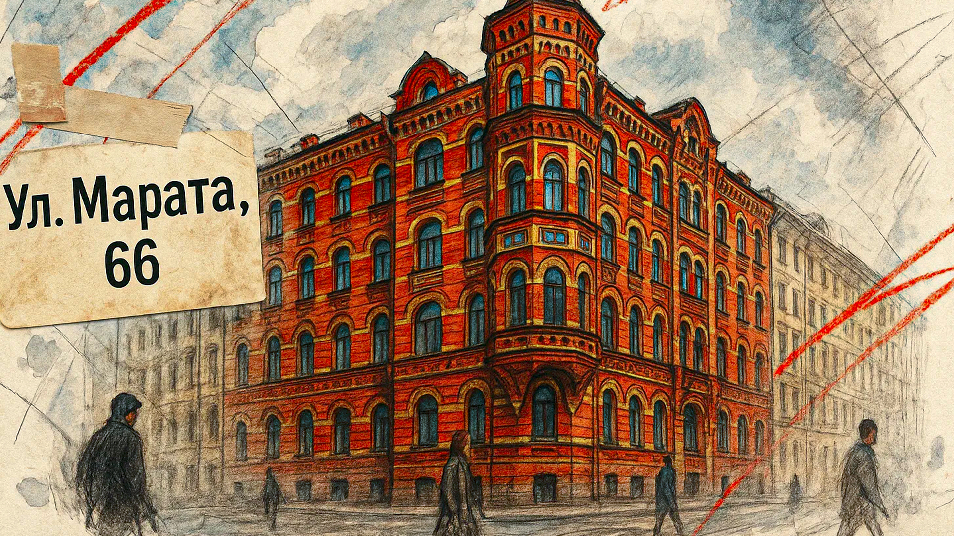 На улице Марата 66 стоит дом, мимо которого трудно пройти. Красный и жёлтый кирпич, вставки из майолики, башня с флюгером — скорее терем из сказки, чем доходный дом. Построенный архитектором Виктором Шретером в 1876 году, он стал одним из символов "кирпичного стиля" Петербурга.