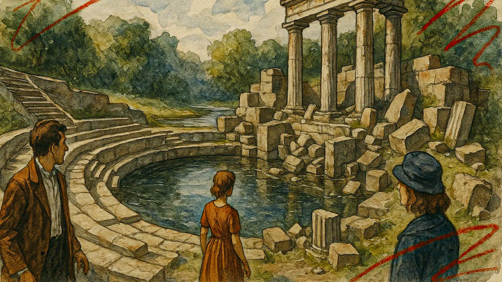 Недалеко от реки Колпанки он заметил ключ с кристально чистой водой и решил превратить это место в маленький театр — Наумахию, вдохновлённую древними Сиракузами.