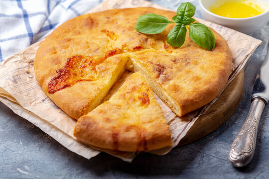 Лайфхак: разделите пирог на части прямо во время приготовления и переверните каждую часть. Так выпечка сохранит свою форму и не развалится.