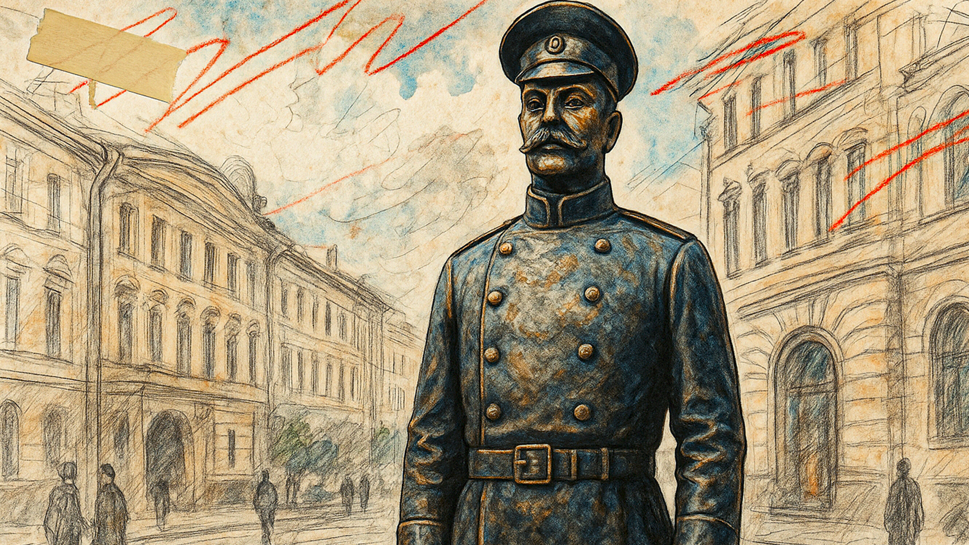 Памятник Городовому хорошо известен петербуржцам. Сегодня он стоит у здания ГУ МВД на пересечении Суворовского проспекта и Кавалергардской улицы — словно действительно несёт службу.