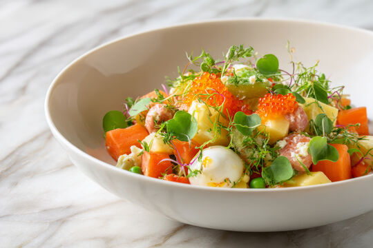 Наконец, вместо традиционной колбасы лучше использовать отварную курицу или индейку. Такой подход сделает салат более полезным и питательным.